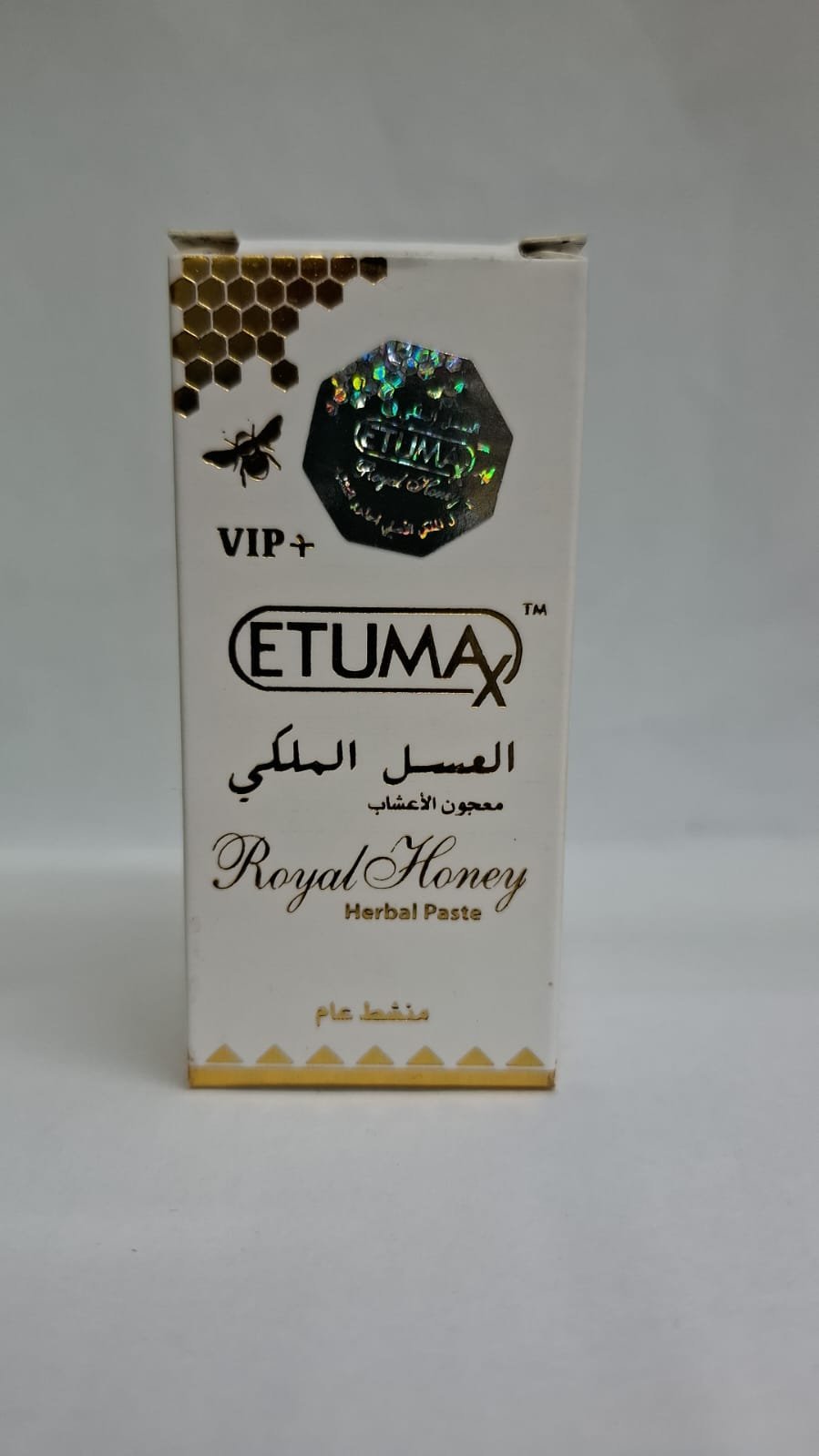Etumax Royal Honey is a premium health supplement made from pure honey, royal jelly, and ginseng. It is designed to enhance energy, boost immune function, and support overall well-being. Conveniently packaged in sachets, it offers a natural way to improve vitality and stamina.